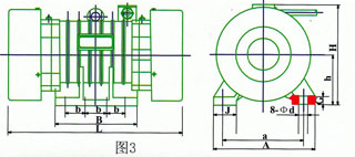 | 型號 | 激振力 KN | 額定功率 KW | 額定電流 A | 振動次數 次/分 | 安裝型式 | L | B | b | A | a | h | H | G | J | d | 圖 |
