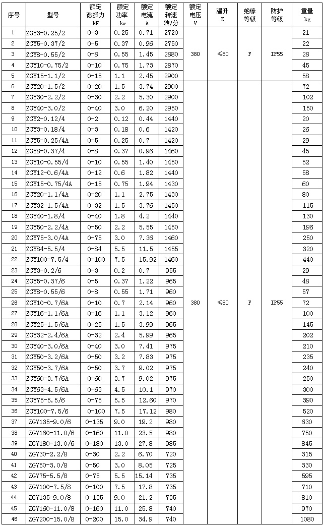 - 激振力與功率配合適當,機體質量輕、體積小 。